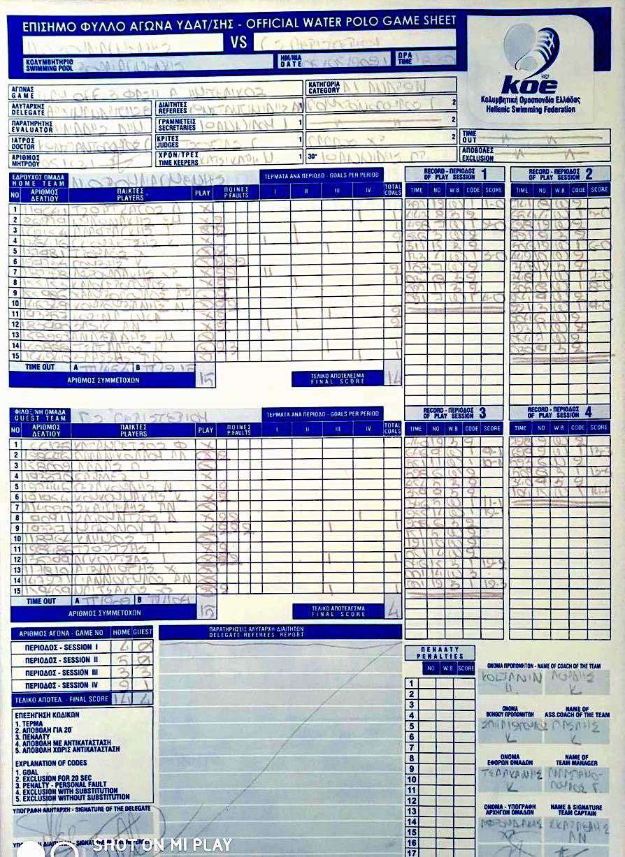 Περιστέρι (Κώστας Λούδης): Καραμπέτσος, Παπανικολάου, Λαδάς Π., Φάρμερ, Γερακούδης, Κουκουμάκης, Σκαρπέλης, Καρούντζος 1, Μιρόνοφ 1, Κλήμος, Τζώρτζης, Αγκόρτσας 1, Αϊβαλιώτης, Γιαννόπουλος, Μπιτσάκος 1