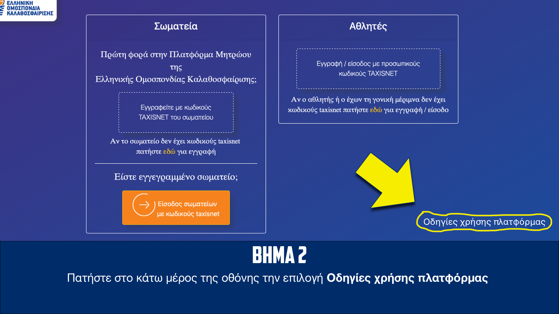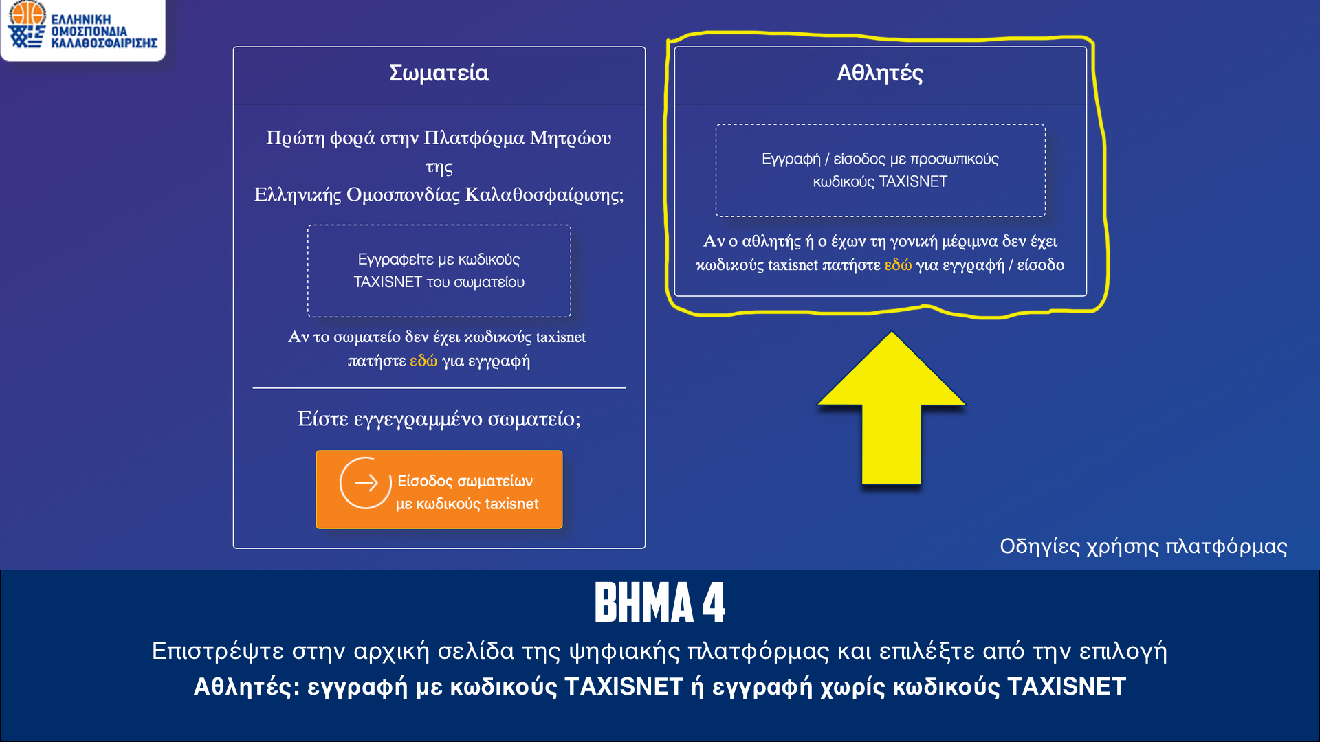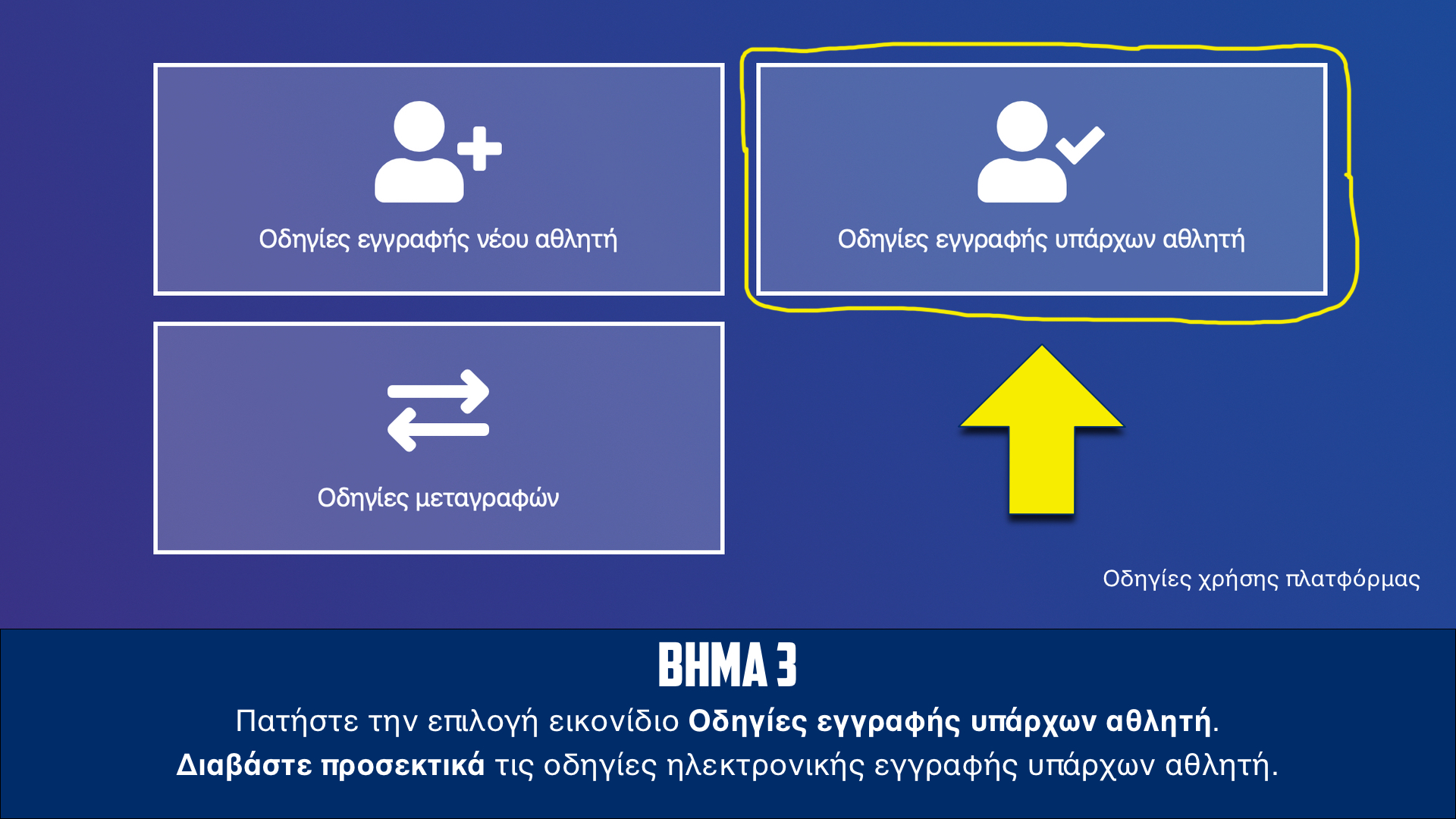 Διαβάστε προσεκτικά τις οδηγίες ηλεκτρονικής εγγραφής υπάρχων αθλητή.
