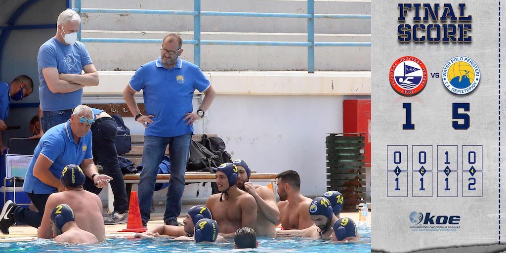Με το Φίλιππο Καραμπέτσο να κατεβάζει ρολά, το Περιστέρι πέρασε με το επιβλητικό 5-1 από το Κολυμβητήριο της Ηλιούπολης κόντρα στον Υδραϊκό, ισοφαρίζοντας την σειρά των πλέι οφ του πρωταθλήματος υδατοσφαίρισης της Α1 Εθνικής Κατηγορίας Ανδρών.