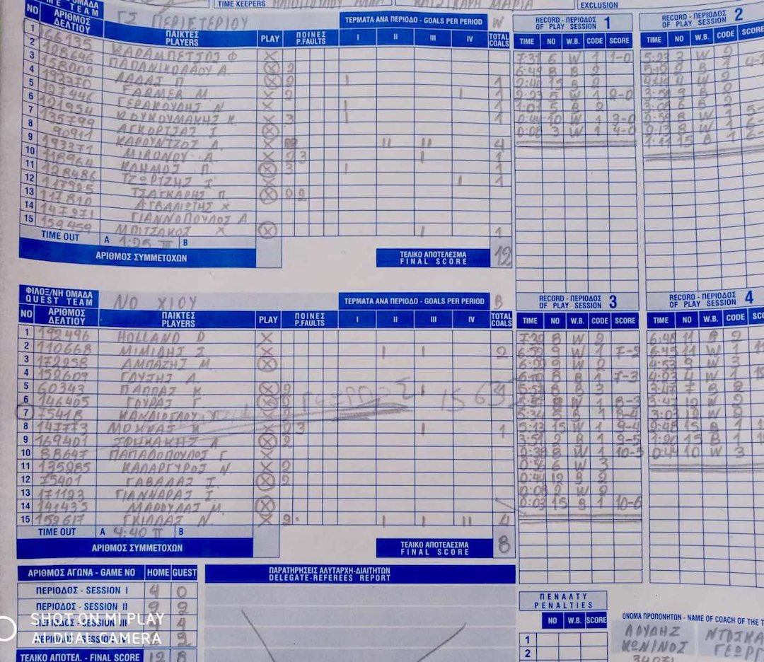 Το Περιστέρι μπήκε πολύ δυνατά στο παιχνίδι και κυριάρχησε απόλυτα στο πρώτο οκτάλεπτο (4-0) απέναντι στην ομάδα της Χίου. Ο Διονύσης Καρούντζος ήταν ο πρώτος σκόρερ με τέσσερα τέρματα, σε μία αναμέτρηση, που είχε απόλυτη ισορροπία στα άλλες τρεις περιόδους. Βέβαια, ειδικά στο τελευταίο οκτάλεπτο ο Κώστας Λούδης έδωσε χρόνο σε όλους τους αθλητές που είχε στην διάθεση του, καθώς είχε «κλειδώσει» τη νίκη.